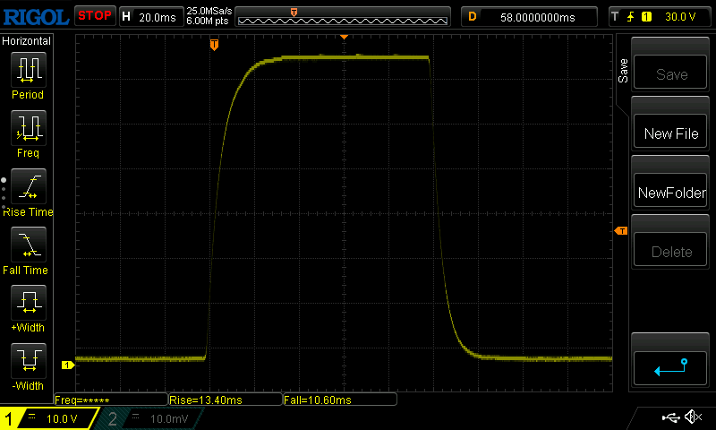| 23 ms ... steigend ↗ und fallend ↘ kombiniert | ↗ 13 ms steigend | |