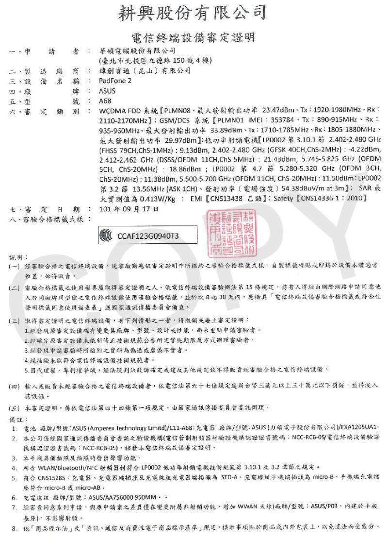 Zur weiteren Ausstattung sollen zudem die schnelle Funktechnologie LTE (Long Term Evolution) und der Nahfunk NFC (Near Field Communication) gehören. Letzterer wurde nun anscheinend durch die NCC in Taiwan nun bestätigt. Die National Communications Commission ist die Zulassungsbehörde für drathlose Geräte in Taiwan und bildet das Gegenstück zur amerikanischen FCC. Die gesamte Technik ist in einem Gehäuse untergebracht das nach den Angaben aus der Verpackung 137,9 x 68,9 x 9 Millimeter (B x T x H) misst und nur 135 Gramm wiegt. Insgesamt sind die Spezifikationen aber noch mit Vorsicht zu genießen, da diese nicht offiziell sind.