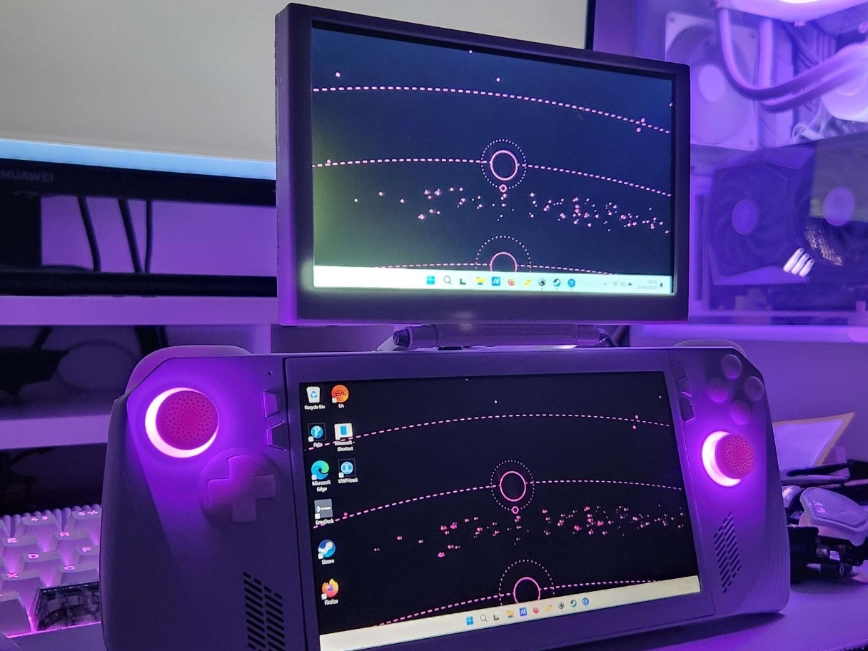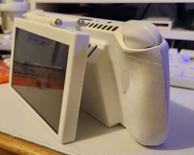 Das kommerzielle erhältliche Display ist dann in das aus dem 3D-Drucker stammende Display-Gehäuse einzukleben. Ausgedruckt werden muss auch ein entsprechendes Scharnier. Die Datenübertragung findet über eine Docking-Lösung statt, welche ebenfalls im Gehäuse des Bildschirms untergebracht wird. Eine besondere Software ist nicht nötig, um den Bildschirm anzusprechen. Der zweite Bildschirm kann auch nach hinten geklappt werden und somit als Ständer für den Asus ROG Ally dienen.