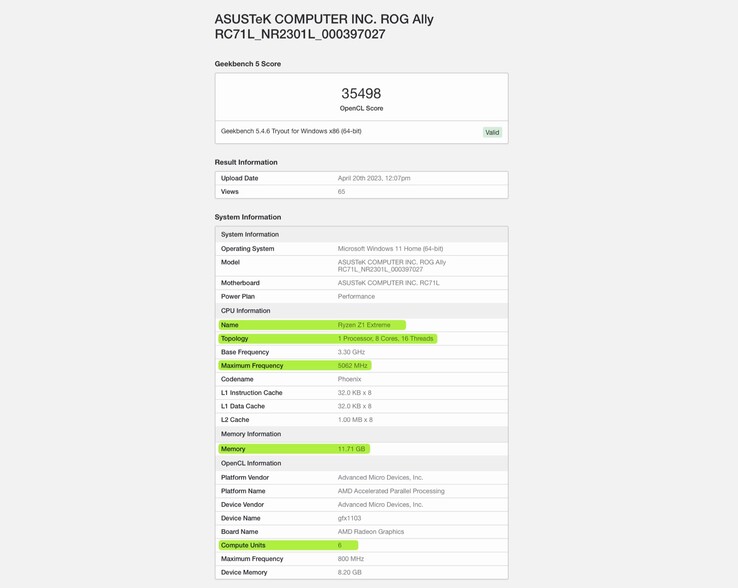Darauf deutet nun zumindest ein Geekbench-Leak, bei dem der Gaming-Handheld mit acht Prozessorkernen, 16 Threads und Boost-Taktfrequenzen bis 5,0 GHz spezifiziert wird. Der Handheld setzt laut Asus auf 16 GB LPDDR5-Arbeitsspeicher, von denen offenbar 4 GB für das System reserviert werden, der Grafikchip kann auf bis zu 8 GB dieses Systemspeichers zugreifen. Die iGPU bietet laut Geekbench 768 Shader auf Basis der RDNA 3-Architektur, was der Radeon 780M entspricht.