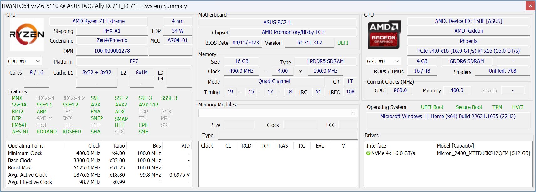 | 87.5 % v7 (old) | 05 / 2023 | Asus ROG Ally Z1 Extreme Z1 Extreme, Radeon 780M | 611 g | 21.22 mm | 7.00" | 1920x1080 | |