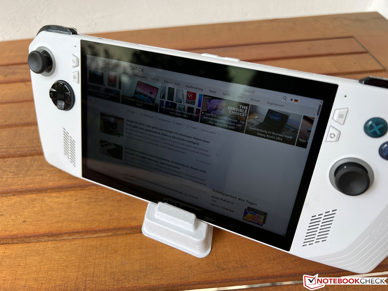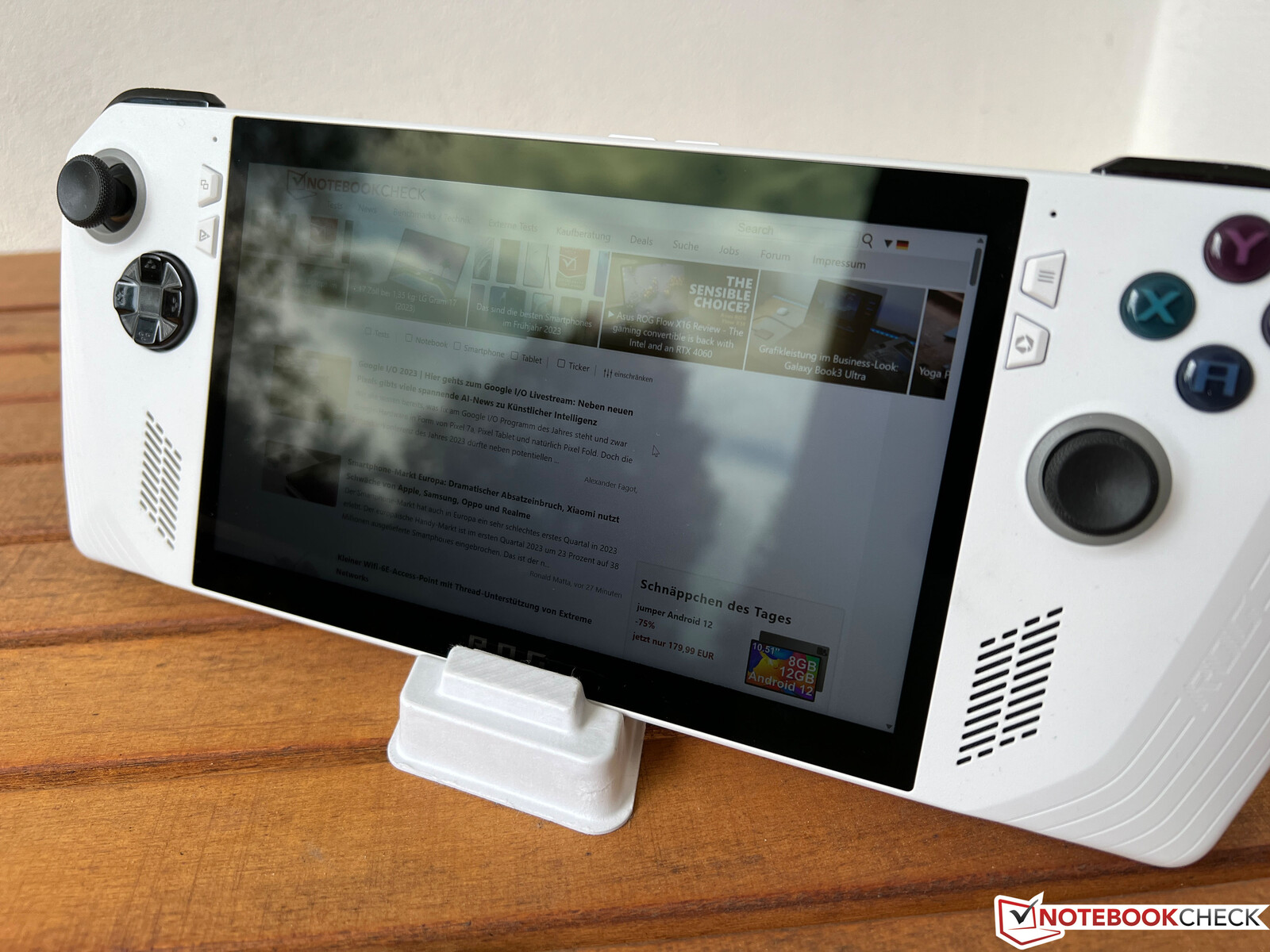 Asus setzt zwar viel Kunststoff ein, aber die Gehäusequalität geht vollkommen in Ordnung und die Verarbeitung sowie Stabilität sind hervorragend. Die kompakte M.2-2230-SSD kann getauscht werden, man kann die Lüfter reinigen und über den schnellen microSD-Kartenleser lässt sich der Speicherplatz zusätzlich erweitern. Das 7 Zoll große IPS-Display eignet sich dank den schnellen Reaktionszeiten und Adaptive Sync hervorragend zum Spielen und es wird mit fast 500 cd/m² auch ausreichend hell.