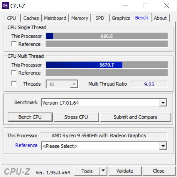 Der AMD Ryzen 9 5980HS treibt das Asus-Notebook an. Mit seinen 8 Kernen und seinen 16 Threads macht das Arbeiten mit dem Gerät richtigen Spaß. Der Basistakt liegt bei 3,3 GHz. Im Turbo sind indes sogar bis zu 4,8 GHz möglich. Das 35 Watt SoC darf sich somit kurzzeitig bis zu 45 Watt genehmigen, wenn es die Rahmenbedingungen zulassen. Im Vergleich zeigt der AMD Ryzen 9 5980HS eine sehr gute Performance sowohl bei den Single-Core-Tests als auch bei den Multi-Thread-Benchmarks.