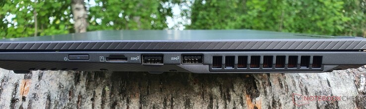 Weiterhin findet man einen 3.5-mm-Audioanschluss, sowie die Netzbuchse für das 240-Watt-Netzteil. Der Abstand zwischen den Anschlüssen ist ausreichend gestaltet, aber die Einschalttaste auf der rechten Seite sitzt bei unserer Vorabversion wackelig im Gehäuse. Auf einen Fingerabdruckleser muss verzichtet werden.