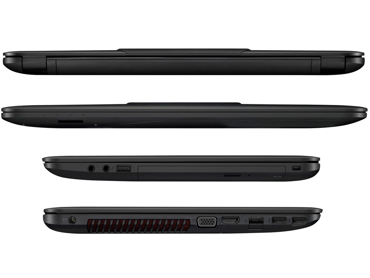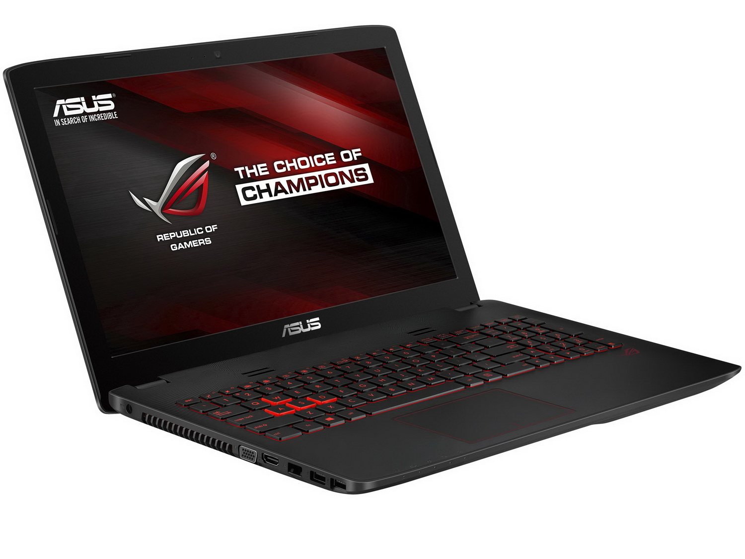 Für den Arbeitsspeicher sind 2x SODIMM (gesamt 16 GB DDR3L) vorhanden. Zum weiteren Featureset des ROG GL552 zählen ein SATA-Slot (für 2,5-Zoll-HDDs bis 2 TByte oder SSDs bis 256 GByte) sowie ein M.2 (2280) Slot. Zudem haben die ROG-Laptops WLAN 802.11 ac oder 802.11 b/g/n (modellabhängig), 1x VGA, 2x USB 3.0, 1x USB 2.0, 1x HDMI-out, Buchsen für Kopfhörer und Mikrofon sowie einen GBit-LAN-Port an Bord. Die Akkukapazität beziffert Asus mit 3200 mAh.