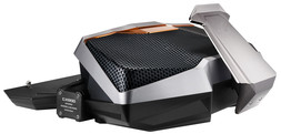 Eine eigens für ROG entwickelte und patentgeschützte Verbindung stellt sicher, dass die Kühlflüssigkeit reibungslos zwischen der Hydro-Kühlung und dem GX800 fließen kann. Die Kühlflüssigkeit wird gepumpt und zirkuliert rund um Prozessor und Grafikkarte, bevor sie ins Kühlmodul zurückfließt. Dort leiten zwei Kühler die Wärme ab. Um den Energiebedarf zu decken, verfügt der GX800 über zwei 330-Watt-Netzadapter.