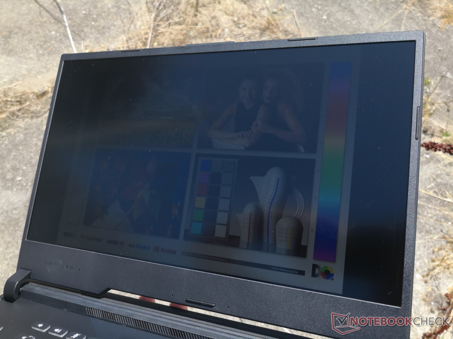 Da die Helligkeit keinesfalls mit der eines MacBook Pro 15 oder eines Dell XPS 15 mithalten kann, ist die Lesbarkeit des Displays im Freien maximal durchschnittlich. Wir würden Nutzern empfehlen, wenn möglich im Schatten zu arbeiten, um besonders ausgewaschene Farben und Reflektionen zu vermeiden. Die Blickwinkel sind gut, und die Farben und Graustufen verändern sich erst bei sehr breiten, unrealistischen Einblickswinkeln.