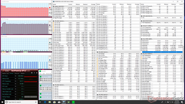 Wir versetzen das Gerät unter Stress, um festzustellen, ob es zu Throttling oder Stabilitätsproblemen kommen könnte. Im Prime95 erreichen die Taktraten des Prozessors in den ersten paar Sekunden 4 GHz, bis eine Kerntemperatur von 88 °C erreicht wird. Danach fallen die Taktraten auf 3,3 GHz ab, um eine kühlere Kerntemperatur von 75 °C zu erreichen (siehe Screenshot). Dieses Verhalten erklärt die Ergebnisse des CineBnech-R15-Loops, wo die Leistung zu Beginn des Tests am höchsten war. Die Taktraten des i7-9750H fallen nie auf unterhalb der Basistaktrate ab, selbst wenn sowohl Prime95 als auch FurMark gleichzeitig laufen. Das würden wir von einem Gaming-Laptop aber auch nicht erwarten.