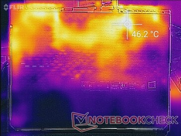 (-) Auf der Unterseite messen wir eine maximalen Wert von 49.2 °C (im Vergleich zum Durchschnitt von 43.3 °C).