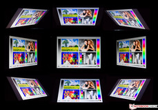 Erwartungsgemäß gut schneidet unser Test-Sample beim Blickwinkeltest ab. Das IPS-Display ist blickwinkelstabil. Nur bei einer flachen und zugleich schrägen Betrachtungsweise kommt es zu einer leichten Schleierbildung. Bei normaler Nutzung sollte es aber keine Probleme geben. Die matte Oberfläche macht die Nutzung im Freien etwas erträglicher, wenngleich aber vorzugsweise ein schattiges Plätzchen zu bevorzugen wäre.