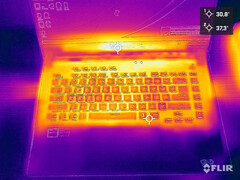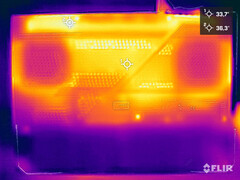 (+) Die maximale Temperatur auf der Oberseite ist 38.9 °C. Im Vergleich liegt der Klassendurchschnitt bei 40.4 °C (von 21.2 bis 68.8 °C für die Klasse Gaming).