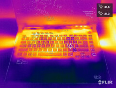 (+) Die Handballen und der Touchpad-Bereich sind mit gemessenen 24.9 °C kühler als die typische Hauttemperatur und fühlen sich dadurch kühl an.