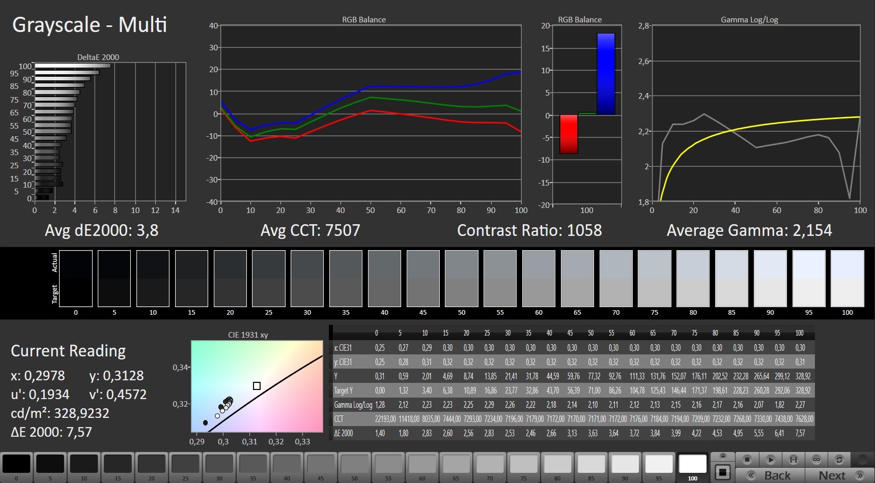 ΔE Greyscale Calman: 3.8 | ∀{0.09-98 Ø5}
