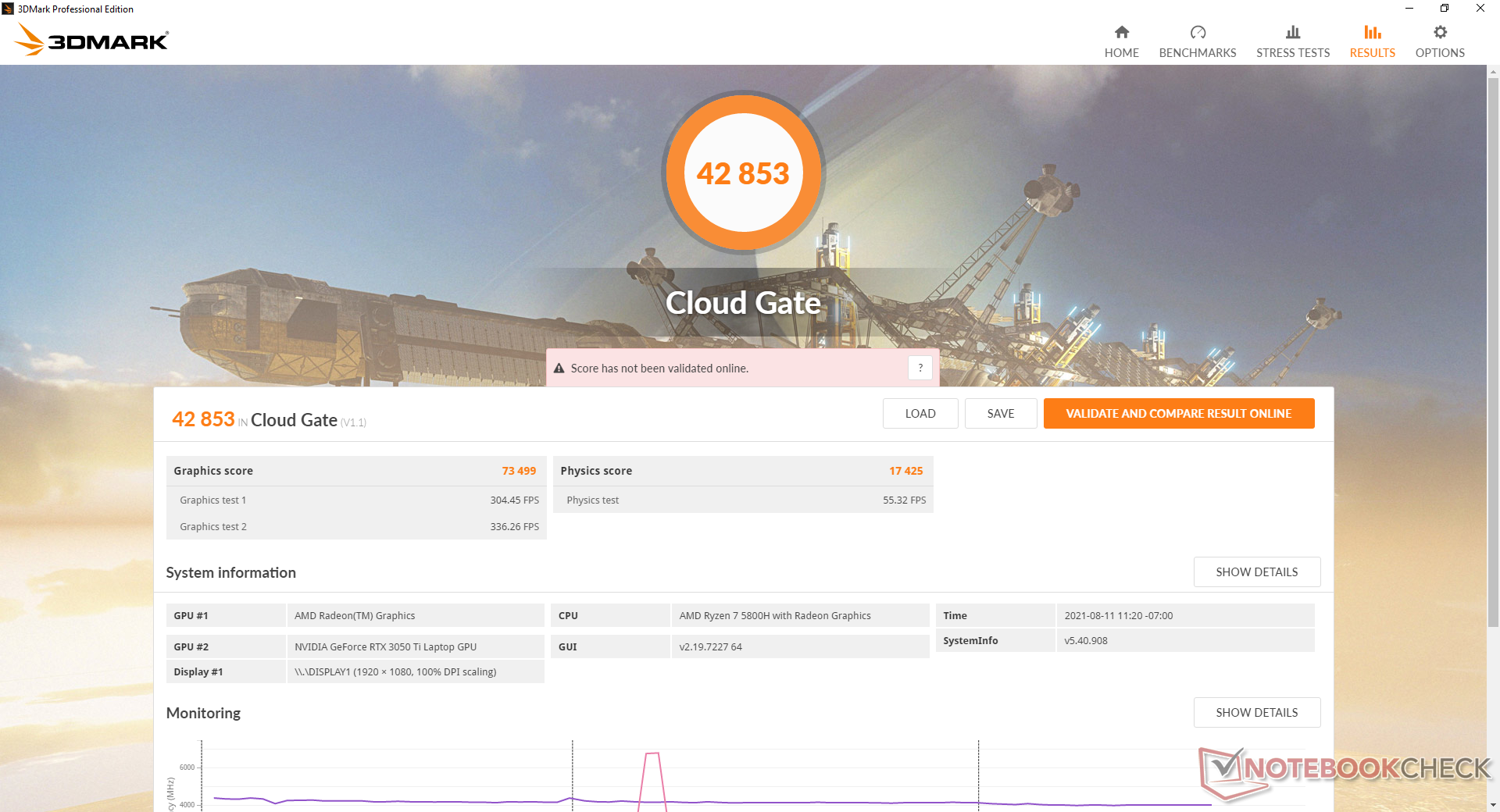 | 86.6 % v7 (old) | 05 / 2021 | Asus Strix Scar 17 G733QSA-XS99 R9 5900HX, GeForce RTX 3080 Laptop GPU | 2.8 kg | 28.3 mm | 17.30" | 1920x1080 | |