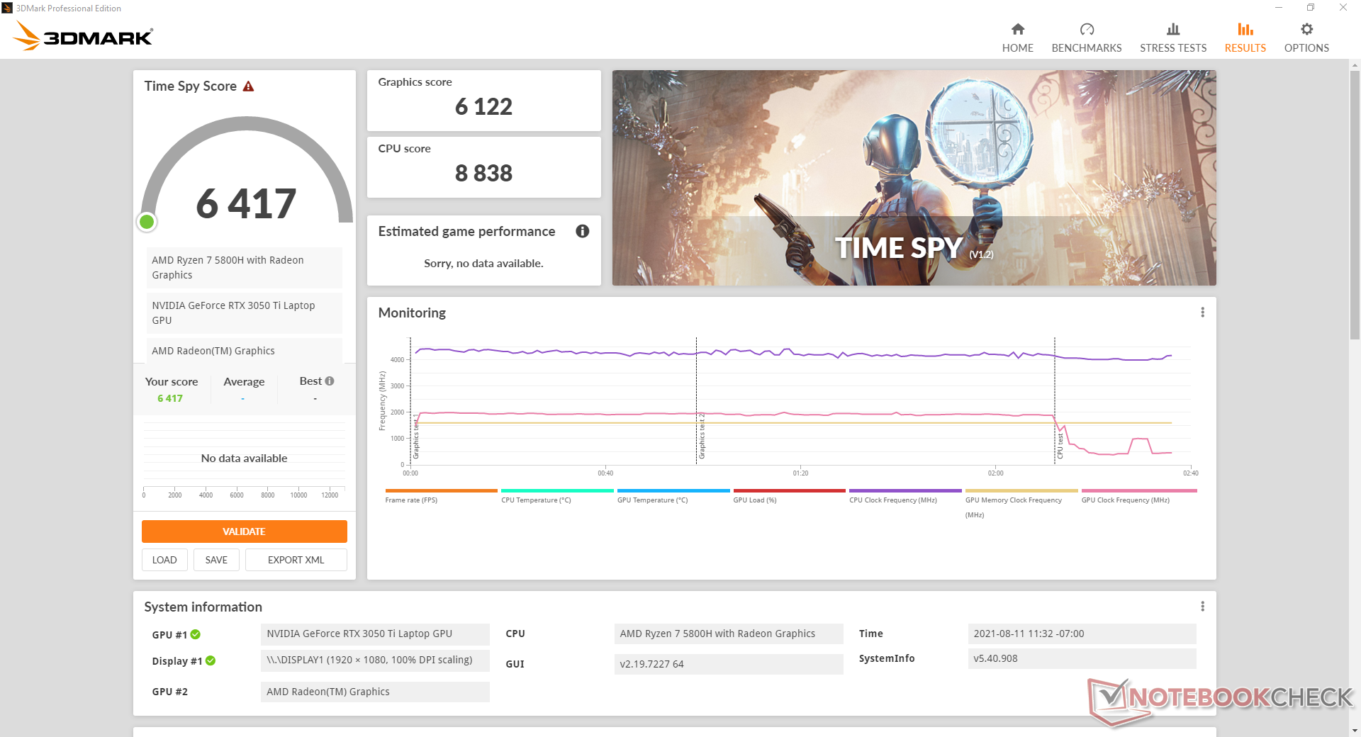 | 80.4 % v7 (old) | 06 / 2021 | MSI Katana GF76 11UE i7-11800H, GeForce RTX 3060 Laptop GPU | 2.7 kg | 25.2 mm | 17.30" | 1920x1080 | |
