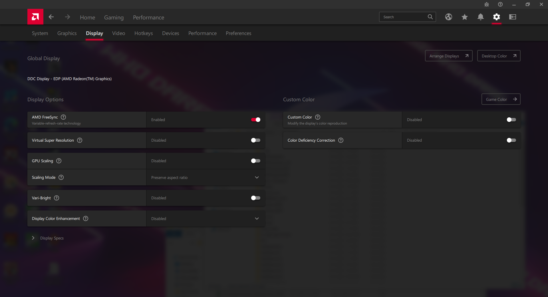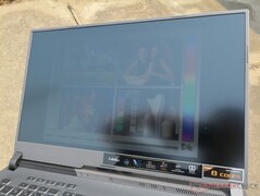 Da die maximale Helligkeit des G713 ungefähr dem Durchschnitt für einen 17,3-Zoll-Gaming-Laptop entspricht, ist die Lesbarkeit im Freien nichts Besonderes. Um zu verhindern, dass die maximale Helligkeit im Akkumodus auf 175 cd/m² beschränkt ist, sollte man in der AMD-Radeon-Software AMDs Vari-Bright deaktivieren.