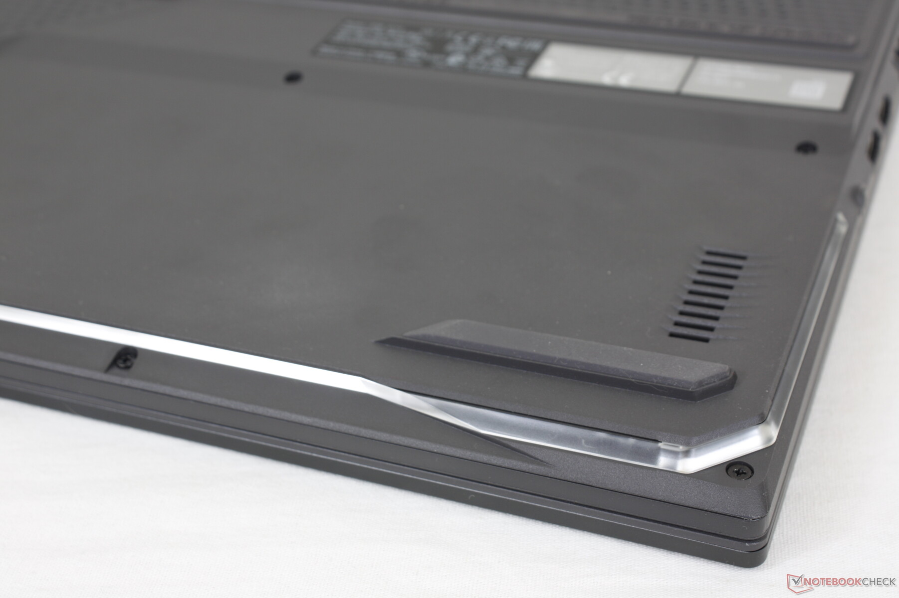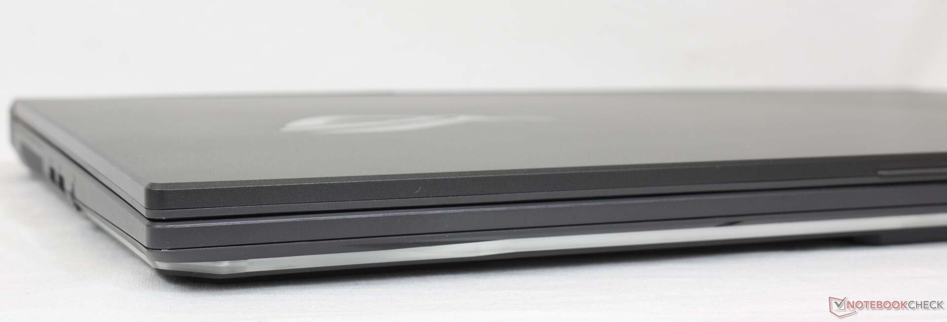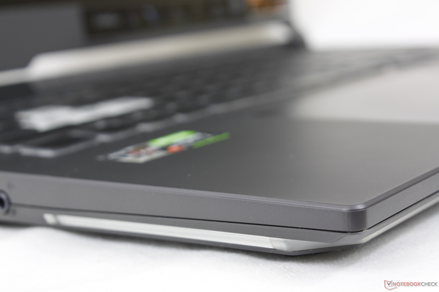 Das G713 gibt es in zwei Varianten, die sich je nach Konfiguration in Sachen Gewicht und Abmessungen unterscheiden. Bei unserem Testgerät handelt es sich um die kleinere Version, die auf eine Dicke von 2,46 cm und ein Gewicht von 2,5 kg kommt, während Konfigurationen mit der RTX 3070 und Höhe von 2,83 cm sowohl dicker als auch schwerer (+2,7 kg) sind. Auch unser Modell ist kein wirkliches Leichtgewicht und fällt zwischen das dünnere Zephyrus S17 und das dickere Lenovo Legion 5.