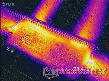 (+) Die Handballen und der Touchpad-Bereich sind mit gemessenen 29.6 °C kühler als die typische Hauttemperatur und fühlen sich dadurch kühl an.