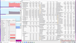 Unter Prime95 Stress erreicht die CPU kurzzeitig 4,1 GHz und stabilisiert sich unmittelbar danach bei 4 GHz und 76 °C. Da die maximale Turbo-Boost-Frequenz des Ryzen 5800H bei 4,4 GHz liegt, ist eine konstante Taktrate von 4 GHz ein gutes Ergebnis. Unter extrem hoher Last erreicht die CPU langfristig eine Spitzentemperatur von 84 °C.