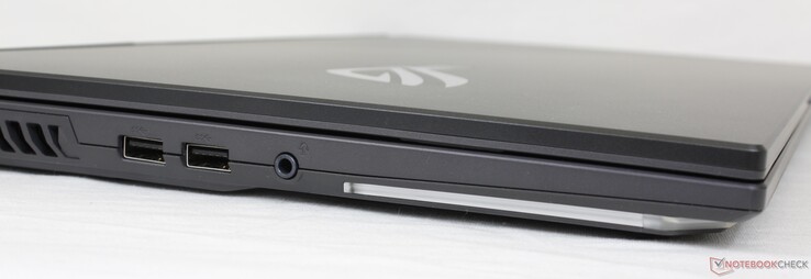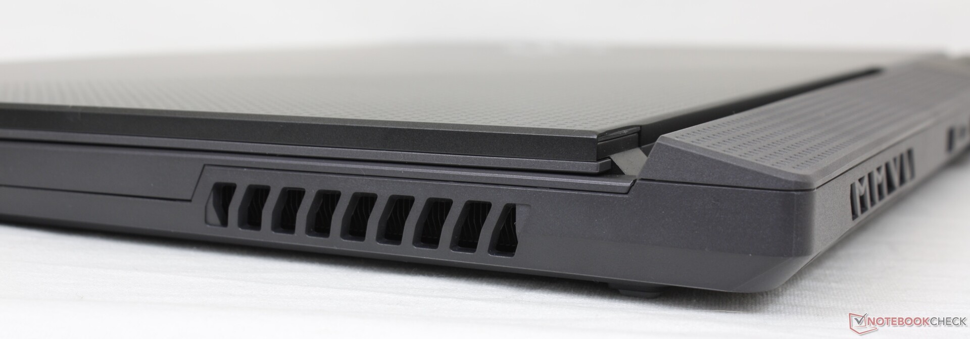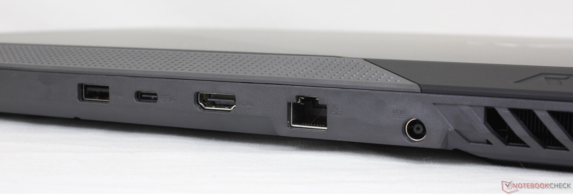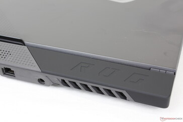 Die Anschlussausstattung ist bis auf den Asus Keystone, welcher den teureren Flaggschiff-Modellen vorbehalten ist, mit der des G733QS identisch. Da sich auf der rechten Seite keine Anschlüsse befinden und die Anschlüsse auf der Rückseite teilweise schwer zu erreichen sind, ist das Anschluss-Layout möglicherweise nicht für alle Nutzer optimal.
