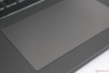 Das ClickPad ist größer als beim G733 (13 x 7,7 cm vs. 10,8 x 6 cm), da Asus hier die dedizierten Maustasten zugunsten einer größeren Oberfläche gestrichen hat. Die Gleiteigenschaften der Oberfläche sind gut, und Finger haften auch bei langsamen Bewegungen nur minimal an der Oberfläche. Die integrierten Maustasten wirken dank ihrem verhältnismäßig lauten, akustischen Feedback und ihrem relativ hohen Tastenwiderstand hochwertig.