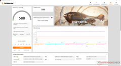 Im Akkumodus ist die Grafikleistung eingeschränkt, vor allem da der Turbomodus nur im Netzbetrieb verfügbar ist. Ein 3DMark-11-Durchlauf lieferte im Akkumodus Physik- und Grafikpunktzahlen von 13.986 bzw. 12.434 Punkten, während im Netzbetrieb 14.521 bzw. 20.905 Punkte erreicht wurden.