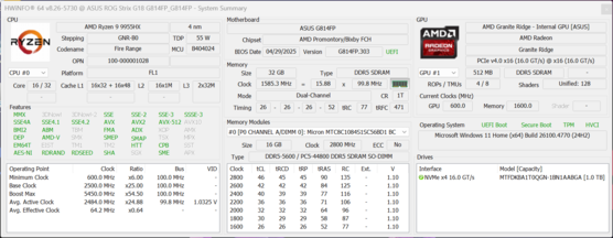 Grundsätzlich ist es natürlich vollkommen in Ordnung, eine schwächere Grafikkarte zu verbauen, um den Preis zu reduzieren. Allerdings wundern wir uns, warum Asus dann den Ryzen 9 995HX verbaut und nicht auf einen kleineren AMD-Prozessor umsteigt.