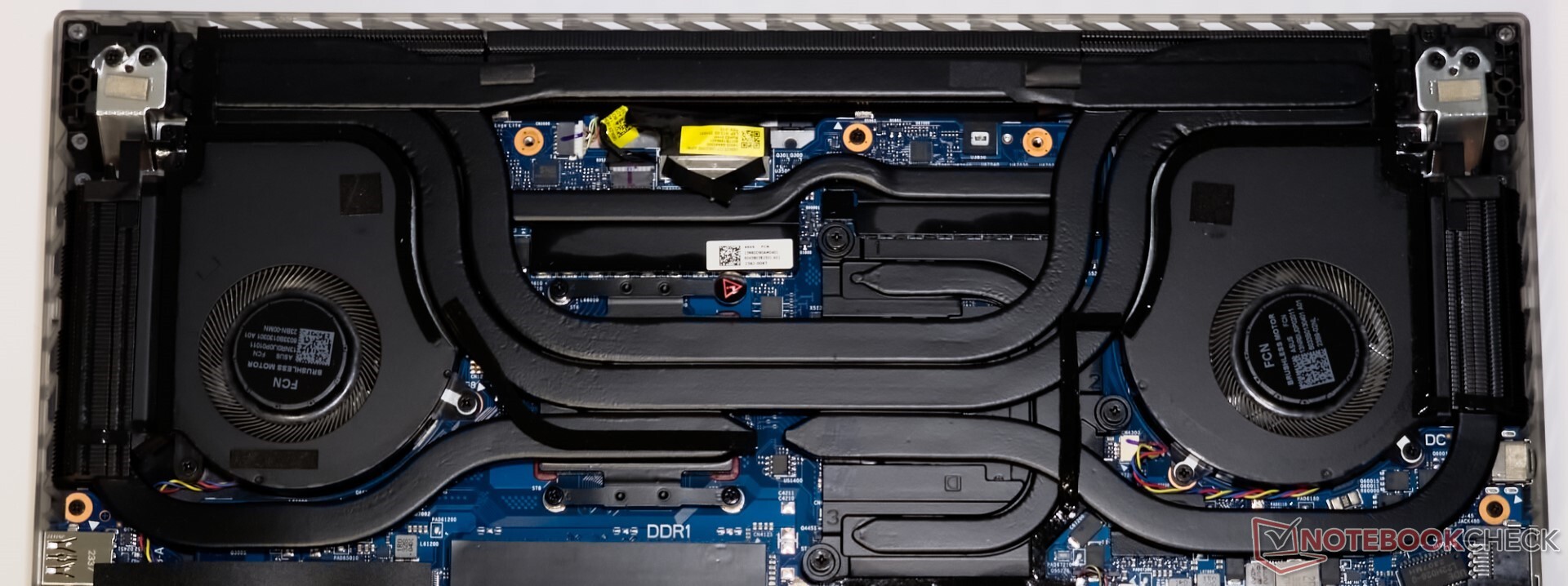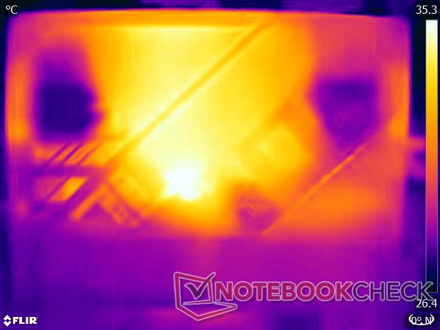 Die Optimierungen des Asus Kühlsystems ermöglichen es dem Scar 16, auch unter Last die kombinierten 180 W von CPU und GPU auszunutzen. Allerdings führt diese Belastung des Laptops zwangsläufig zu hohen Oberflächentemperaturen und Lüftergeräuschen.