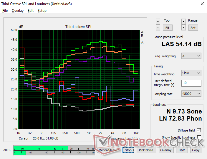 (+) | Die Lautsprecher können relativ laut spielen (84.7 dB)
