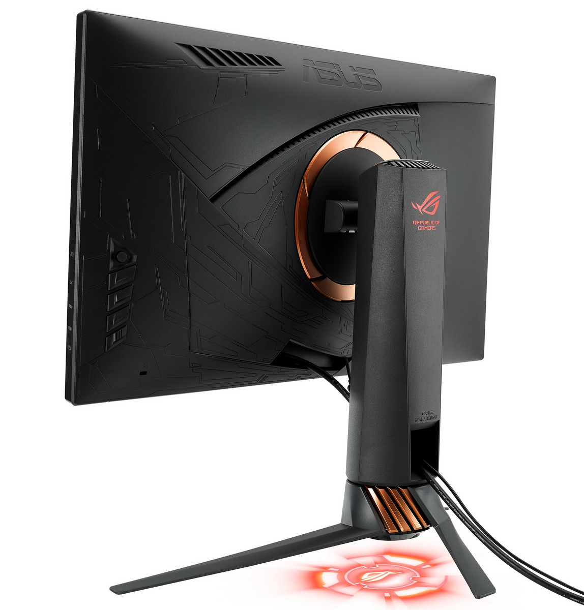 Durch das rahmenlose Design eignet sich der ROG Swift PG258Q zudem perfekt für das Surround-Gaming mit mehreren Monitoren. Die Lichtsignatur ermöglicht es Gamern, im Handumdrehen eigene Lichteffekte zu erstellen. Neben den beiden mitgelieferten ROG-Logo-Covern befinden sich drei Blanko-Cover im Lieferumfang. Mit einem Marker oder bedruckter Folie können individuelle Logos erstellt werden, die unter den Fuß des Monitors projiziert werden.