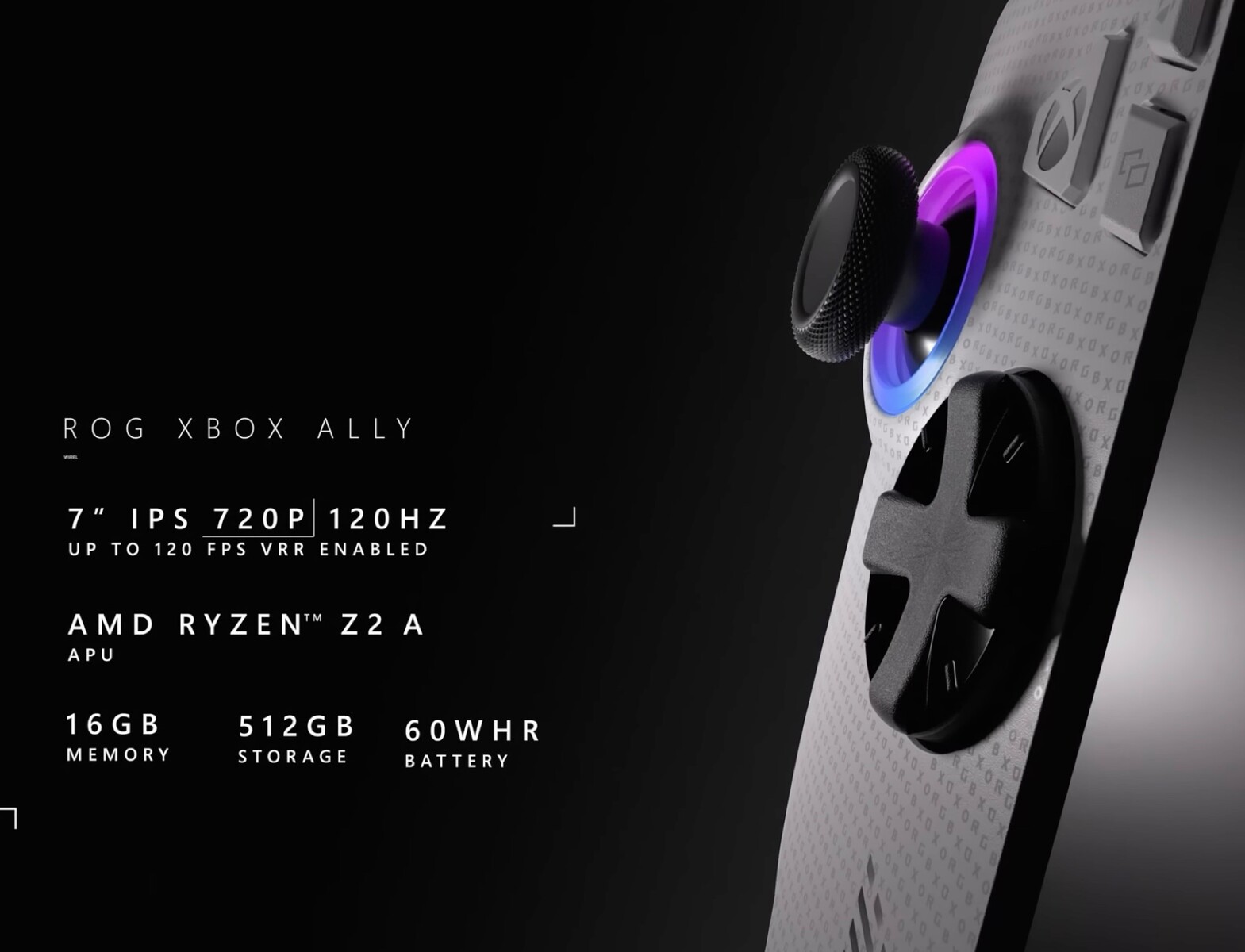 Während beide Handhelds dasselbe 7 Zoll IPS-Panel mit einer Bildfrequenz von 120 Hz und einer Auflösung von 1.920 x 1.080 Pixel besitzen, soll der Ryzen Z2 A des günstigeren ROG Xbox Ally Spiele in 720p-Auflösung mit 30 Bildern pro Sekunde darstellen können, beim ROG Xbox Ally X soll durch den leistungsstarken Ryzen AI Z2 Extreme 1.080p-Auflösung mit 30 bis 60 fps möglich sein.