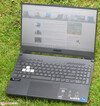 Die Tastatur des F15 setzt sich größtenteils aus konkav gewölbten Tasten zusammen. Einige wenige Tasten (z.B. Enter, Umschalt) sind eben gestaltet. Sie alle bieten einen mittleren Hub und einen klaren Druckpunkt. Das Tastenlayout kann nicht unbedingt als optimal bezeichnet werden: Es seien die kleinen Pfeiltasten und die nur einzeilige "Enter"-Taste genannt. Der Tastenwiderstand geht in Ordnung. Während des Tippens wippt die Tastatur etwas. Als störend hat sich das nicht erwiesen. Die dreistufige Beleuchtung (einfarbig, weiß) wird mittels zweier Funktionstasten gesteuert. Alles in allem liefert Asus hier eine alltagstaugliche Tastatur.
