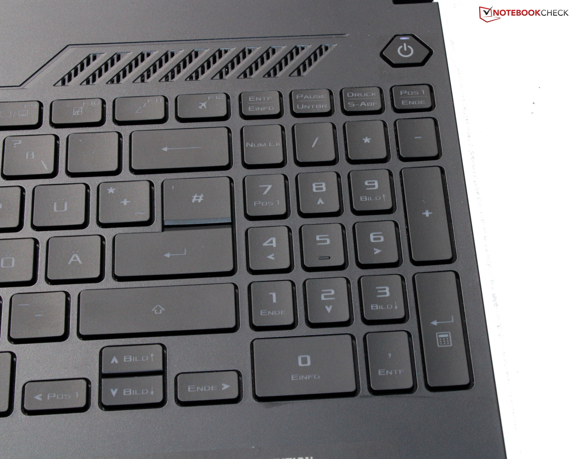 Zwischen den drei herstellerspezifischen Leistungsprofilen (siehe Tabelle) kann über die Tastenkombination "Fn" + "F5" gewechselt werden. Es wurden die Profile "Leistung" (Benchmarks) und "Leise" (Akkutests) genutzt. Der GPU-Modus war auf "Standard" (= Umschaltgrafik) gesetzt. Das Kontrollcenter ("Armoury Crate") des Notebooks erlaubt das Anlegen individueller Profile ("Manuell") samt Festlegung der PPT und der Lüfterkurven.