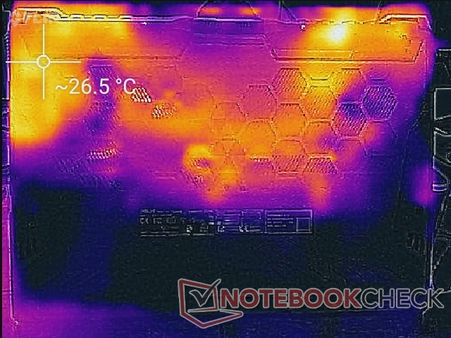 (+) Die Handballen und der Touchpad-Bereich sind mit gemessenen 26.4 °C kühler als die typische Hauttemperatur und fühlen sich dadurch kühl an.