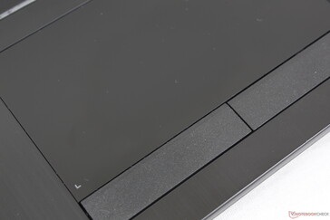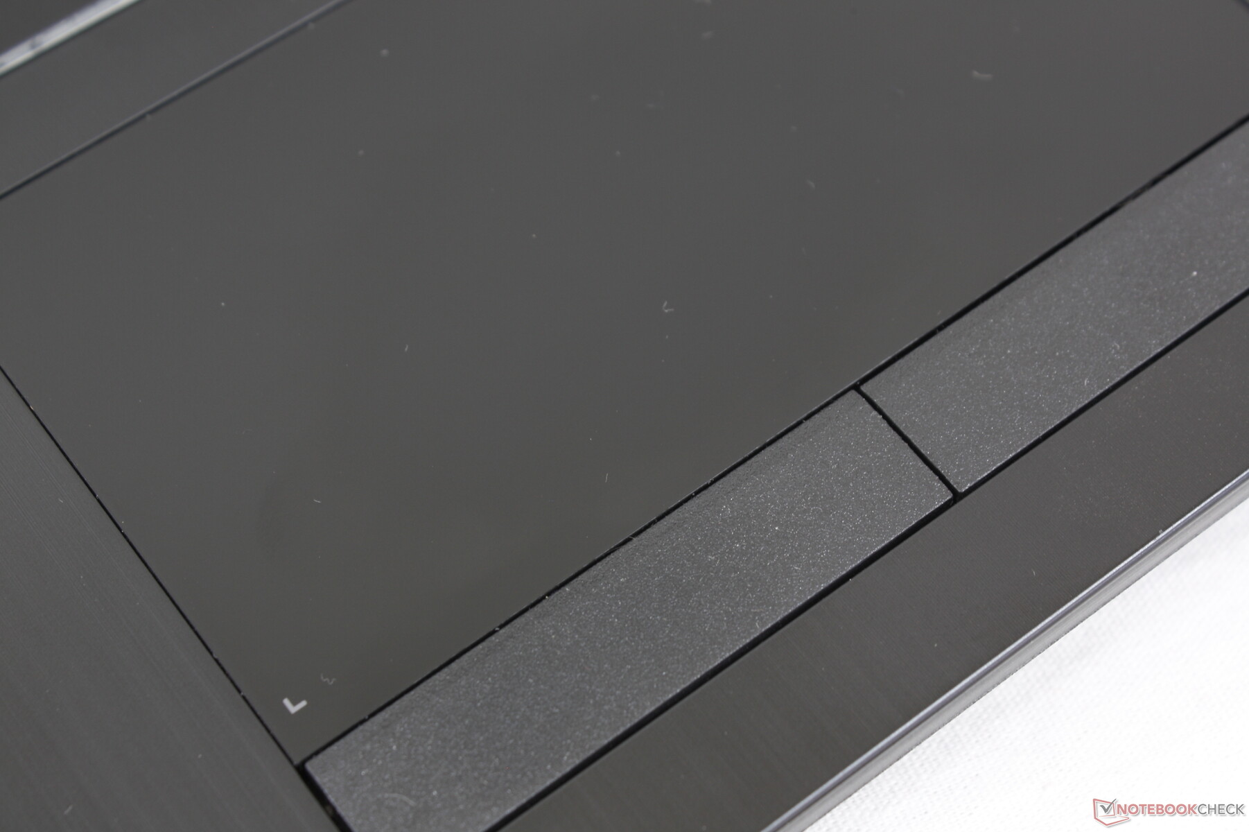 Das Touchpad ist relativ klein (~10,6 x 8,0 cm), aber es besitzt als eines der wenigen Gaming-Notebooks dedizierte Maustasten für eine genauere Steuerung und Klicks. Die Tasten sind sehr leise beim Drücken mit mäßigem, aber zufriedenstellendem Feedback im Gegensatz zu den viel lauteren Tasten der MSI GT-Serie. Die texturlose Touchpad-Oberfläche ist aber leider anfällig für unschöne Fingerabdrücke.