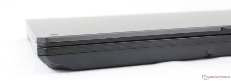 Die Steifigkeit der Base fühlt sich zwar besser an als beim MSI GF65, auf der anderen Seite wippen der Deckel und seine zwei kleinen Scharniere etwas mehr, als uns lieb ist, und erwecken daher auf lange Sicht nicht viel Vertrauen.