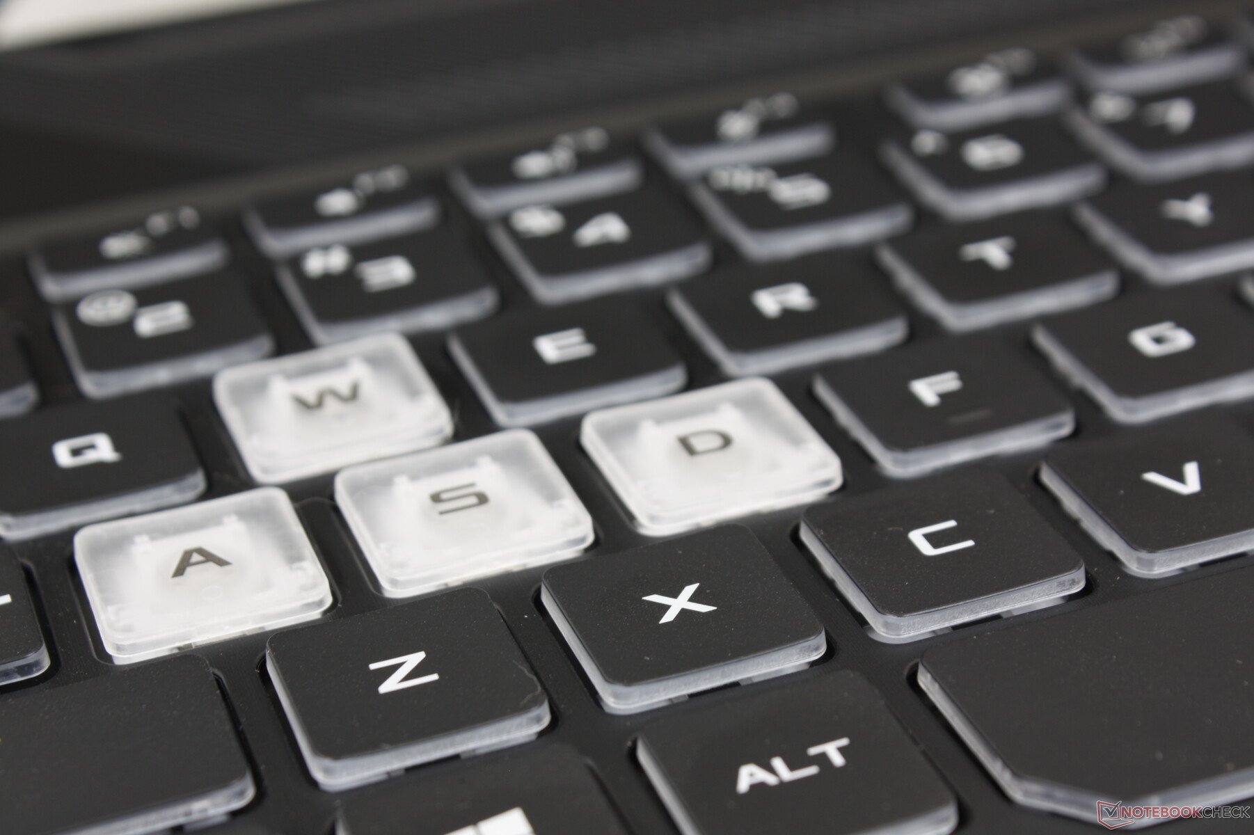 Während sich das Tastaturlayout gegenüber dem FX505 geändert hat, bleibt das Tippgefühl weitgehend gleich. Das Feedback der QWERTZ-Haupttasten ist immer noch zufriedenstellend mit einem mäßig lauten Klappern. Unser Hauptproblem sind nach wie vor die Pfeiltasten, die jetzt noch kleiner sind als die der letzten Generation. Sie sind nicht nur beengt, auch das Feedback ist schwammig und unbefriedigend. Wer die Pfeiltasten häufig nutzen möchte, sollte sich eine externe Tastatur oder einen anderen Gaming-Laptop zulegen.