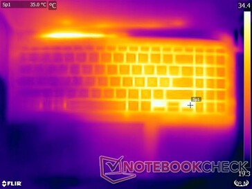 (+) Die Handballen und der Touchpad-Bereich sind mit gemessenen 31.6 °C kühler als die typische Hauttemperatur und fühlen sich dadurch kühl an.