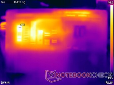 (-) Auf der Unterseite messen wir eine maximalen Wert von 54.2 °C (im Vergleich zum Durchschnitt von 39.2 °C).