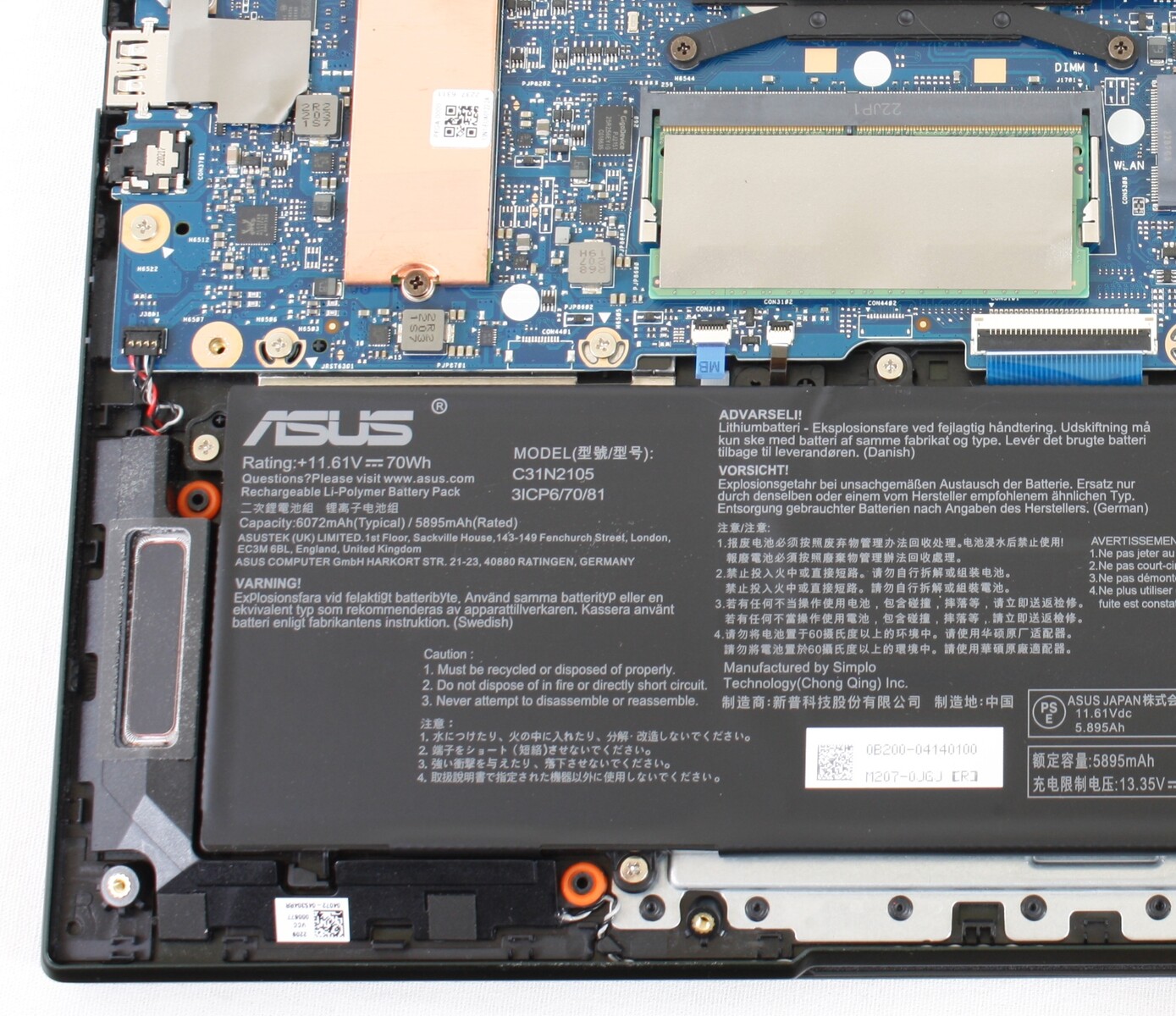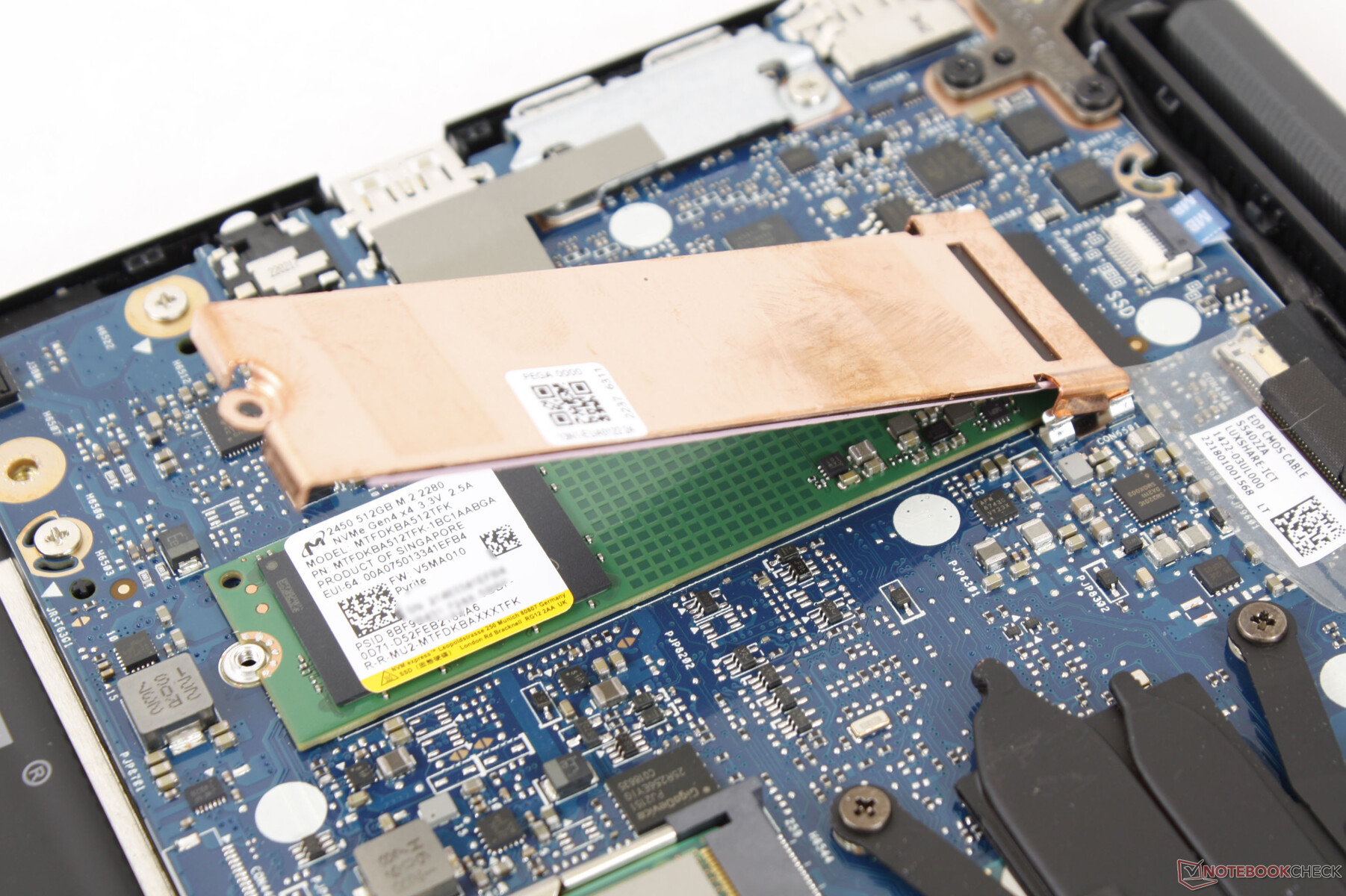 Die Bodenplatte ist mit zehn T5-Torx-Schrauben gesichert, die leicht entfernt werden können, da keine Schrauben unter dem Gummifuß verborgen sind. Die Benutzer haben direkten Zugriff auf den einzelnen DDR4-SODIMM-Steckplatz, das M.2 2230-WLAN-Modul und den M.2 2280-Speichersteckplatz, ohne Garantieaufkleber brechen zu müssen.