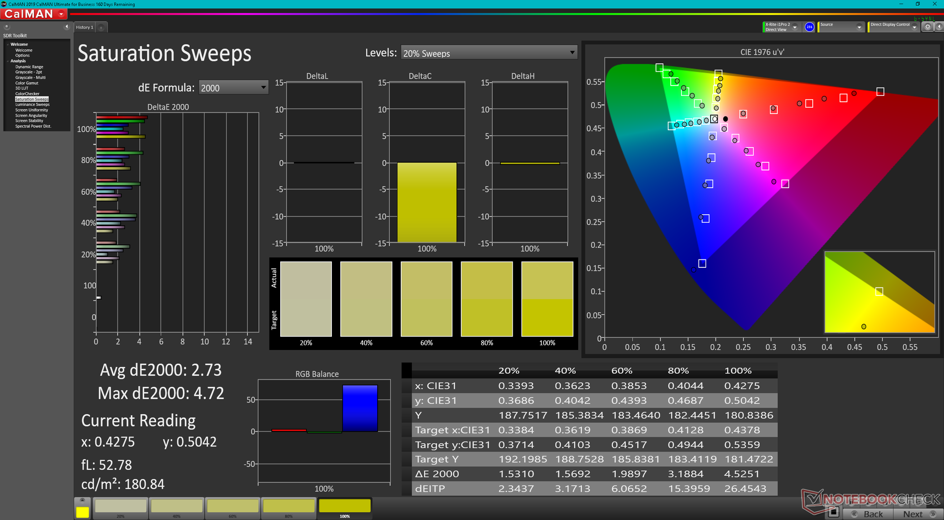 | sRGB Coverage (%) | 100 | 99.94 0% | 54.7 -45% | 100 0% | 92.8 -7% | 99.8 0% |