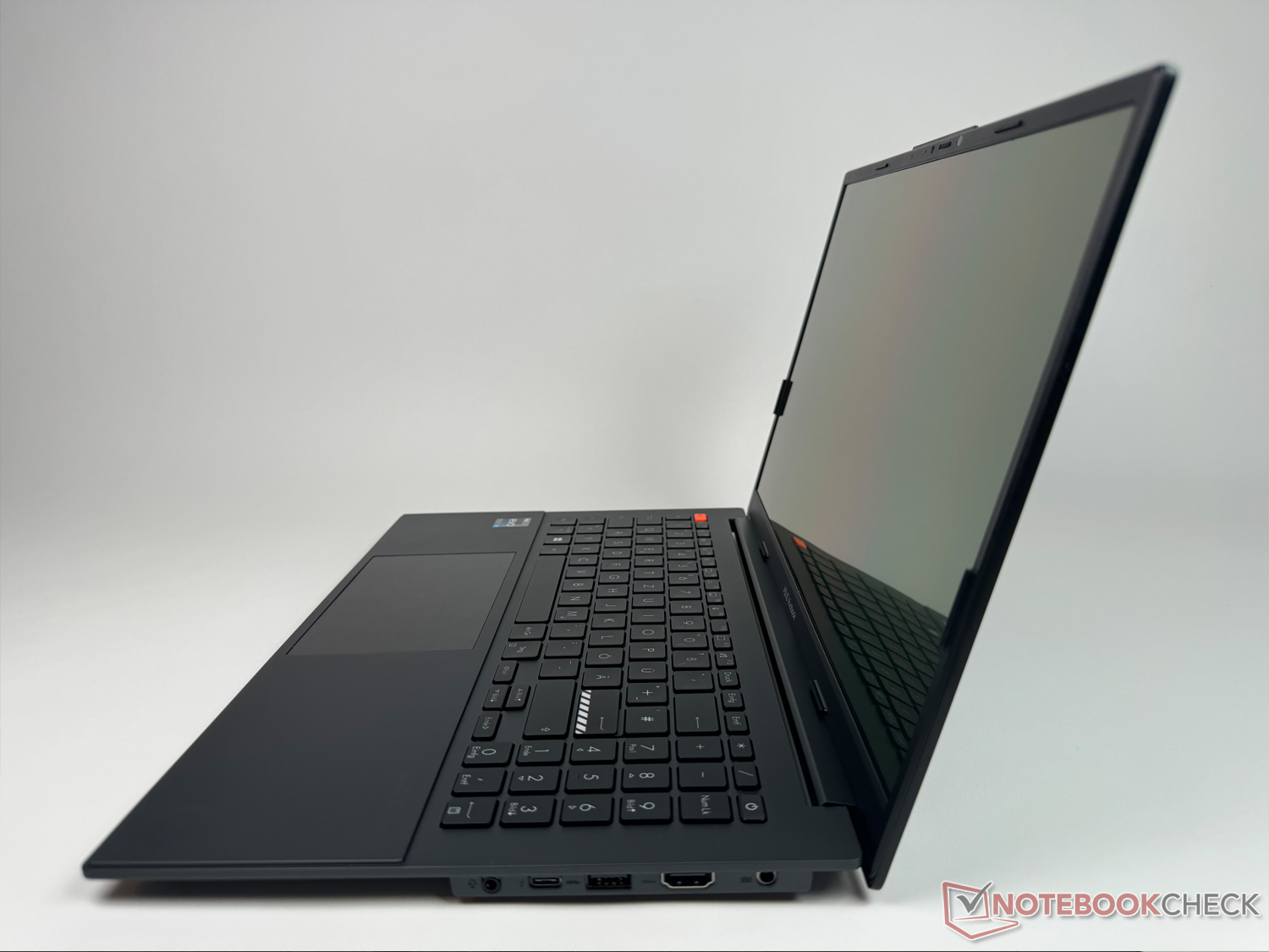 Bei der Verarbeitung gibt es nichts zu bemängeln. Dazu punktet das Gerät mit Robustheit gemäß dem Militär-Standard MIL-STD 810H. Die gut 1,6 kg Gewicht sind für ein 15,6-Zöller mit dieser Ausstattung in Ordnung. Links bringt Asus lediglich einen langsamen USB-A 2.0 unter, rechts gibt es unter anderem Thunderbolt 4 und HDMI 1.4.
