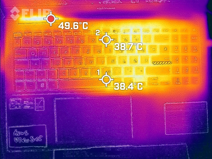 Das fällt bei von uns getesteten Spielen auf. Touchpad und Tastatur werden warm, aber keinesfalls heiß. Im Stresstest sind dagegen noch einige Grad mehr zu erwarten, sodass das Bedienen der Tastatur unangenehm werden könnte.