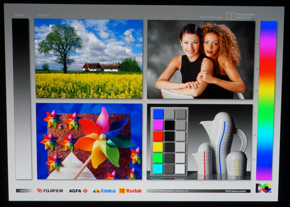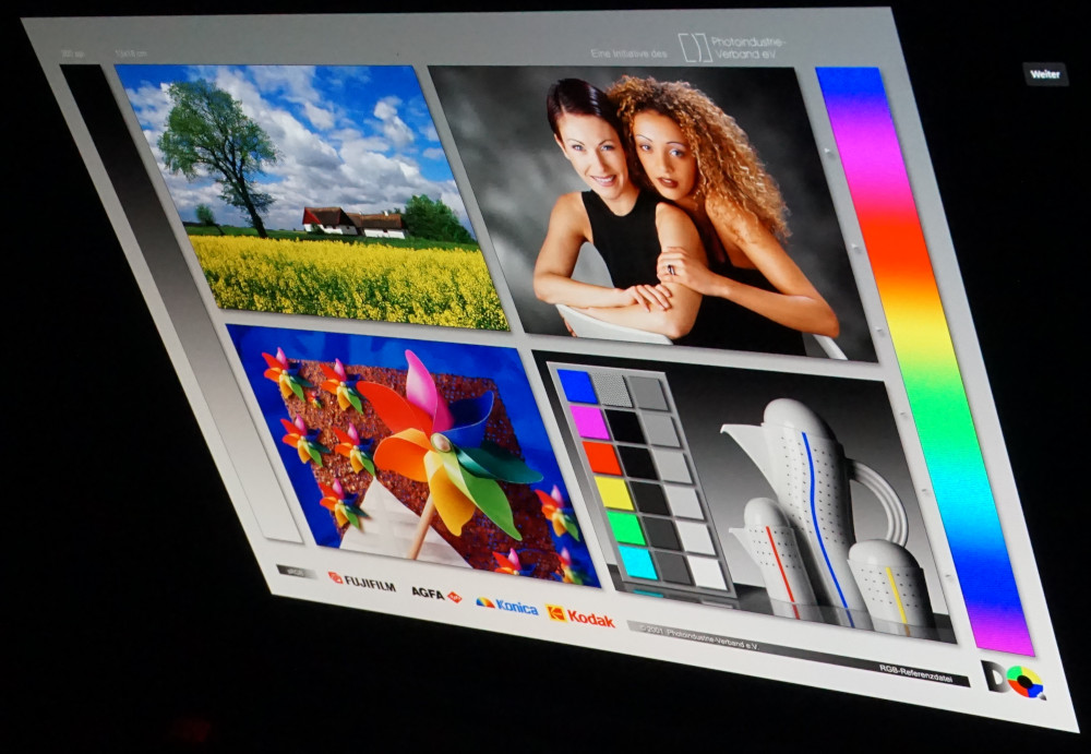 Für eine unverfälschte Wahrnehmung der Farben sorgt unter anderen die Pantone-Zertifizierung. Auch ohne nachträgliche Kalibrierung liegen die Farbabweichungen unterhalb des Wahrnehmbaren. Ebenfalls wichtig ist die glänzende Oberfläche, die eine Nutzung im Freien allerdings deutlich erschwert.