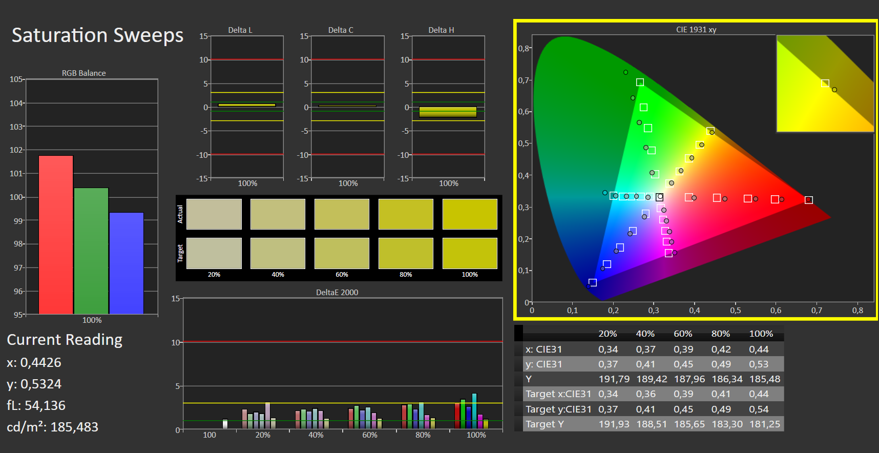 | Delta E Colorchecker * | 2.2 | 1.88 15% | 2.12 4% | 2.18 1% | 2.26 -3% | 6.3 -186% |