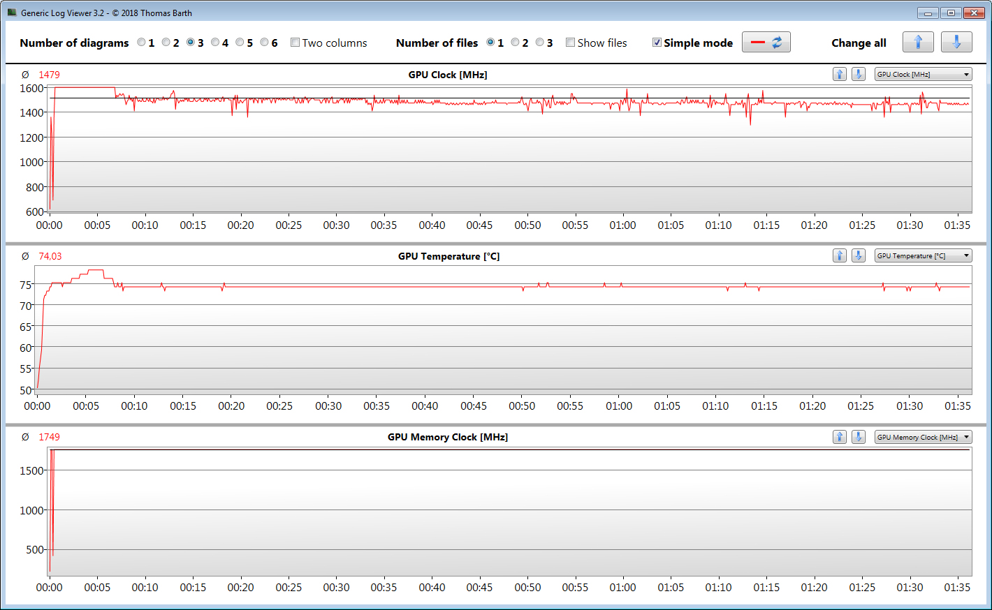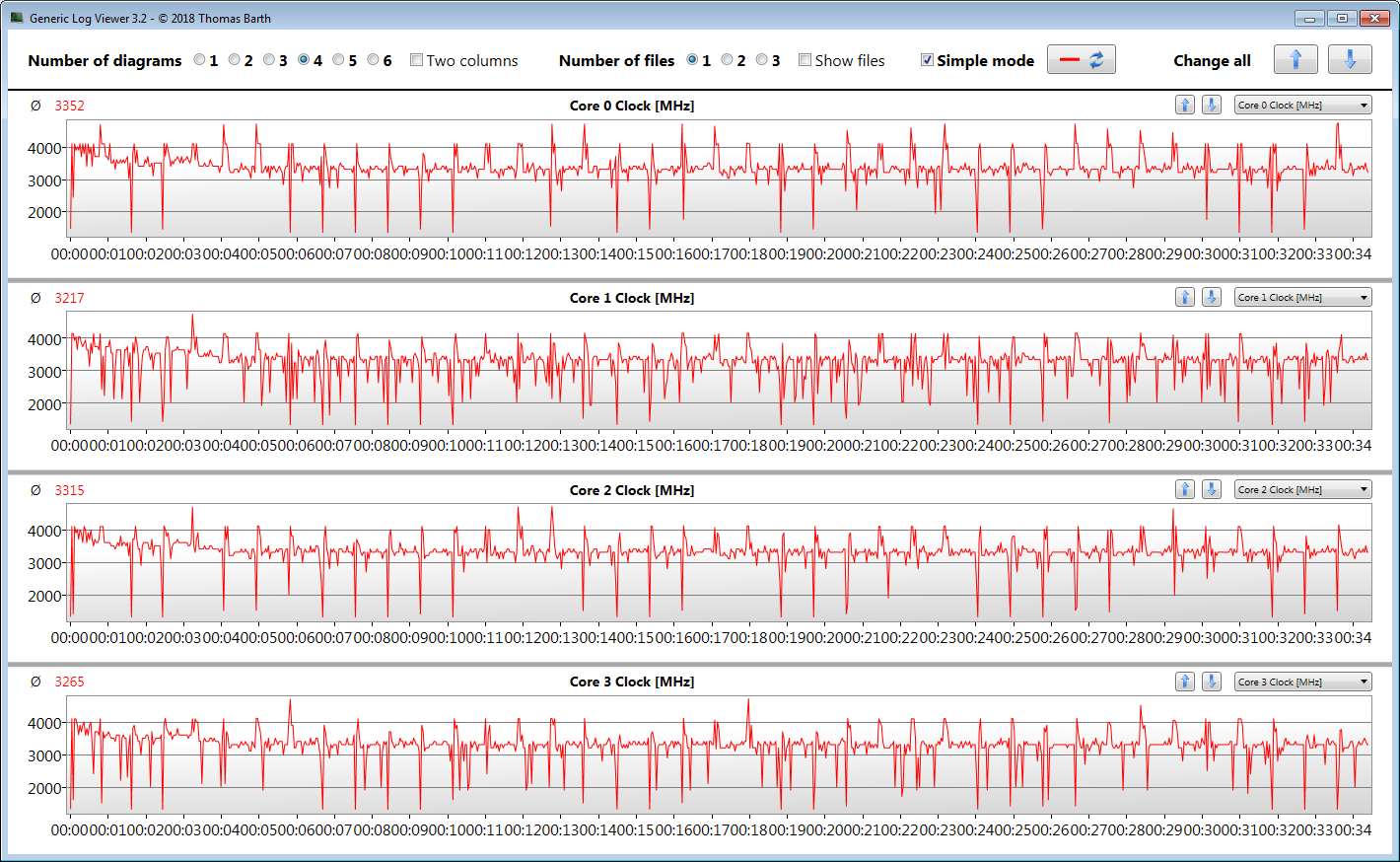Unseren Stresstest (Prime95 und Furmark laufen für mindestens eine Stunde) durchlaufen CPU bzw. GPU mit 500 bis 1.000 MHz bzw. ca. 1.300 MHz. Der Stresstest stellt ein Extremszenario dar. Wir überprüfen mit diesem Test, ob das System auch bei voller Auslastung stabil läuft.