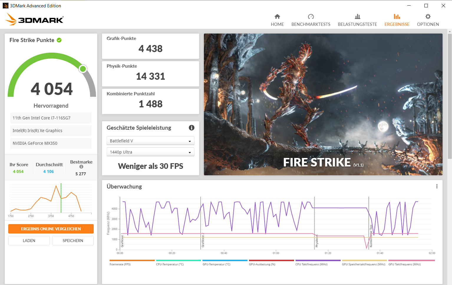 | Durchschnittliche NVIDIA GeForce MX350 (48.3 - 49, n=2) | |