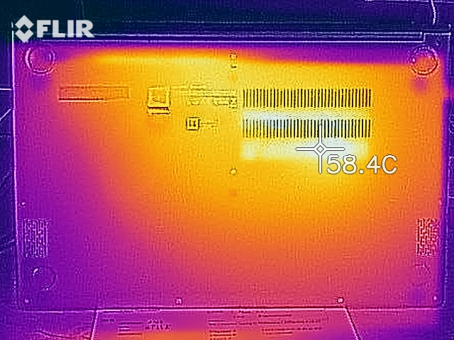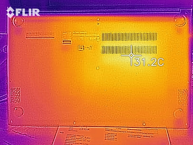 (±) Auf der Unterseite messen wir eine maximalen Wert von 41.3 °C (im Vergleich zum Durchschnitt von 39.1 °C).