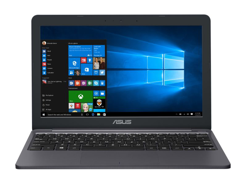 In puncto Bildschirm liefert das Vivobook E12 X207NA-FD053T eine bessere Leistung. Zwar kann das 11,6-Zoll-Panel mit seinen 1.366 x 768 Pixeln nicht mit einem Full-HD-Gerät wie dem TrekStor Primebook C13 mithalten, doch die Pixeldichte reicht für eine klare Anzeige der Inhalte. Die maximale Helligkeit von 257 cd/m² ist überzeugend. Sie ermöglicht Arbeiten im Freien – trotz glänzender Oberfläche. Der überdurchschnittliche Bildschirm wird durch eine gleichmäßige Ausleuchtung von 94,1 Prozent und ein Kontrastverhältnis von 167:1 abgerundet. Um eine hohe Akkulaufzeit zu ermöglichen, verzichtet Asus im Vivobook E12 auf energiefressende Hardware. Beim Prozessor handelt es sich um einen Intel Celeron N3350 mit 1,1 GHz (Turbo Boost bis zu 2,4 GHz), der von 2 GB RAM unterstützt wird. Obwohl die RAM-Kapazität deutlich hinter dem heutigen Standard von 4 bis 6 GB bleibt, reicht die Leistung des Vivobooks für alltägliche Office- und Internet-Aufgaben. Andererseits stößt der Laptop bei vielen gleichzeitig offenen Programmen und komplexeren Aufgaben wie Bild- oder Videobearbeitung schnell an seine Belastungsgrenzen. Er nutzt eine Intel HD Graphics 500, einen integrierten, leistungsschwachen Grafikchip mit DirectX-12-Unterstützung, den man in einigen ULV SoCs der Apollo-Lake-Serie antrifft. Wenig anspruchsvolle Games sollten mit diesen Grafikkarten spielbar sein. Vor allem der interne Speicher ist mit 32 GB extrem klein. Letztendlich kann der Speicher mit einer MicroSD-Karte erweitert werden. Das Vivobook eignet sich für Vielreisende, die ein sehr einfaches Gerät zum Bearbeiten von Dokumenten und kleinere Aufgaben brauchen.