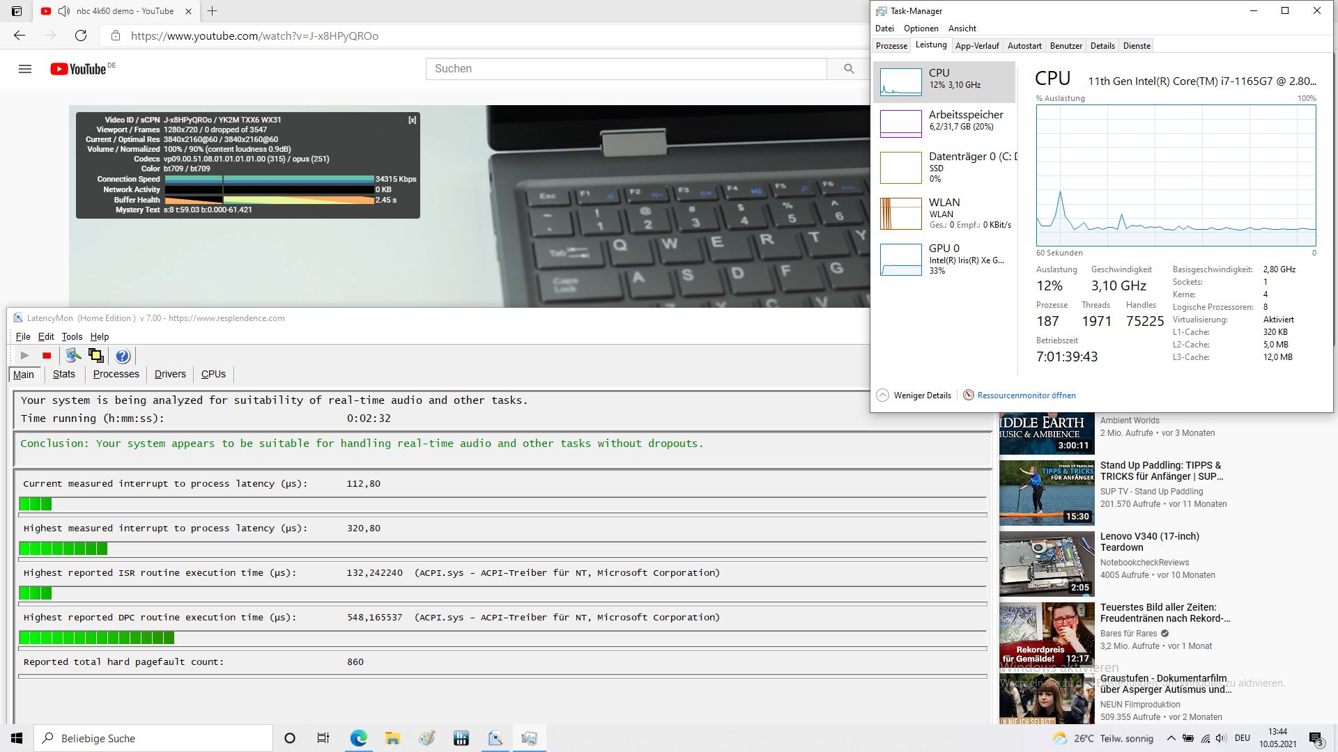 Das Wifi-6-Modul Intel AX201 ist mittlerweile eines der Standardmodule. Die Übertragungsraten im ZenBook sind beim Empfang Spitze, bei der Sendeleistung ist mehr möglich.